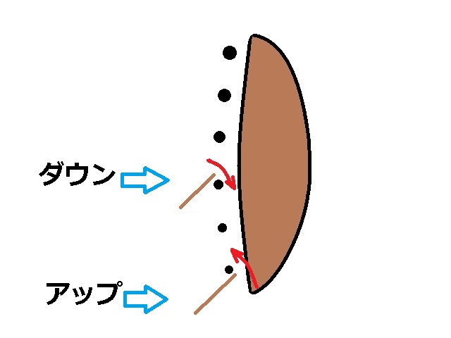 このフォームが一番よく出てくるんですが、極端に表現すると別のページ[ピックを弦に当てる角度とストローク | 深さと振り幅]に書いてあります、この中のBパターンに近いです。