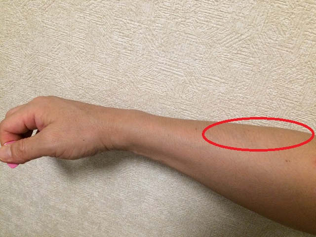 そうやって仕上げた腕を触ってみると、熱くなっている部分があります。それがこの部分です。