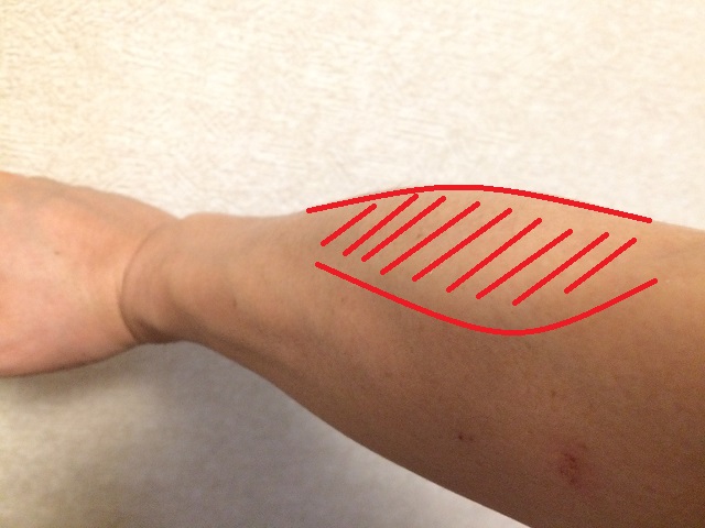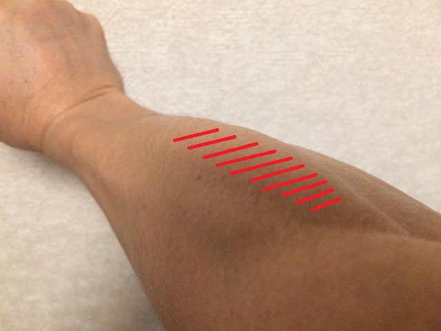 リフ筋と言う風に言っていますが、この呼び名は私独自のものなのです。肘から先の指を動かすための筋肉の集まりがありますが、そのあたりを「リフ筋」と名付けています。